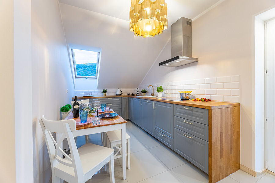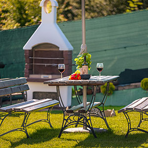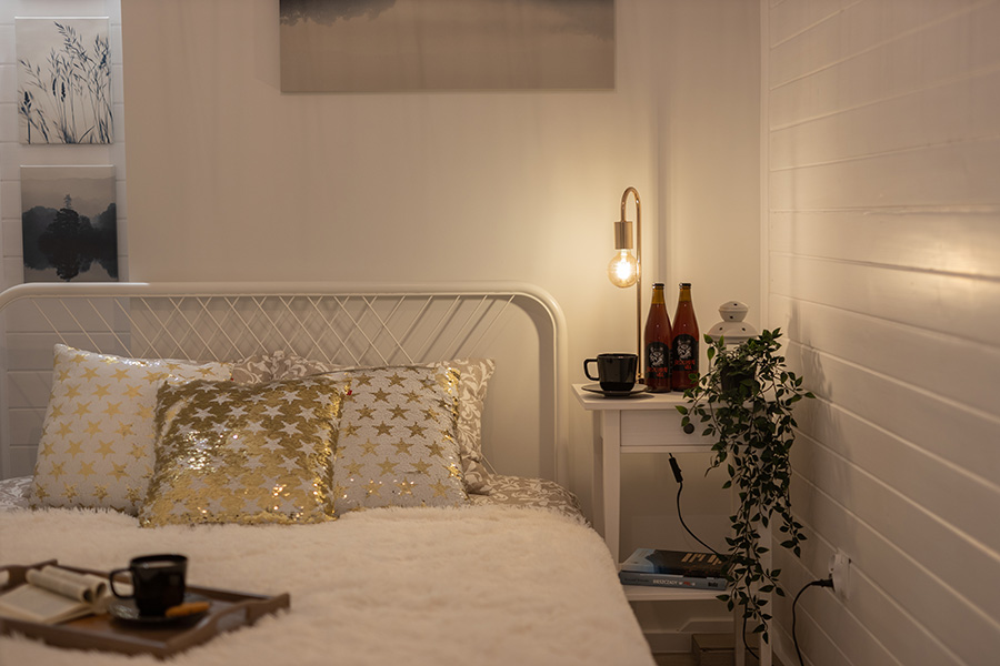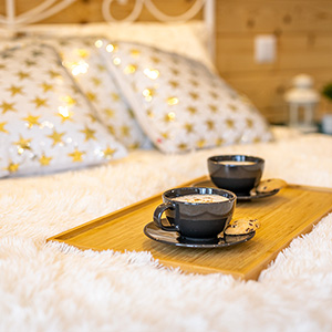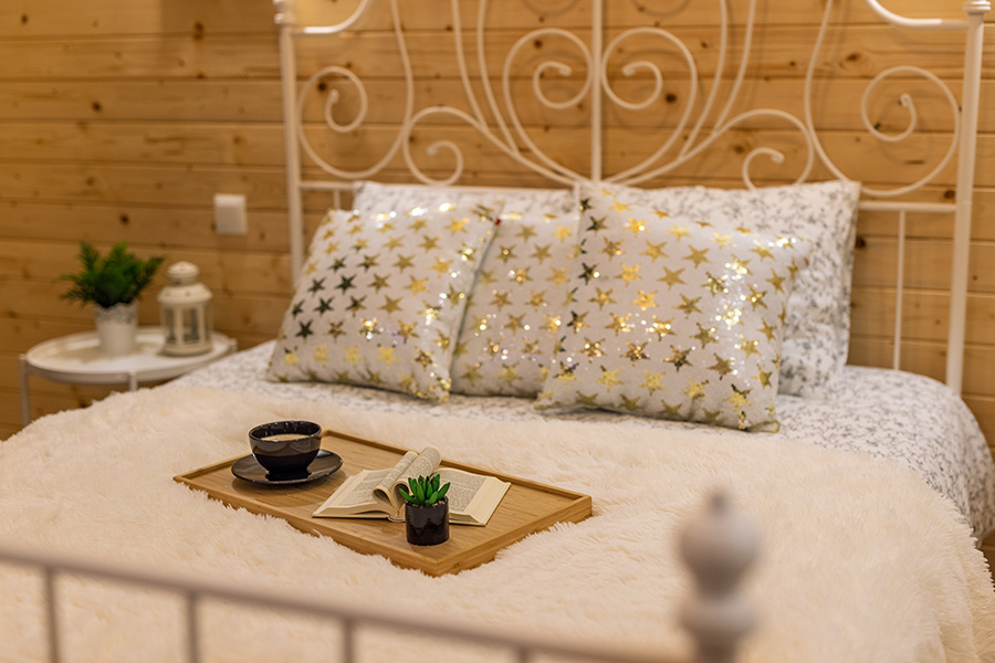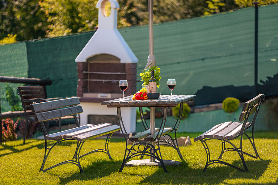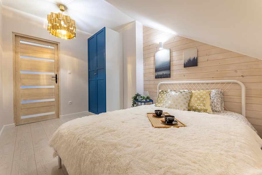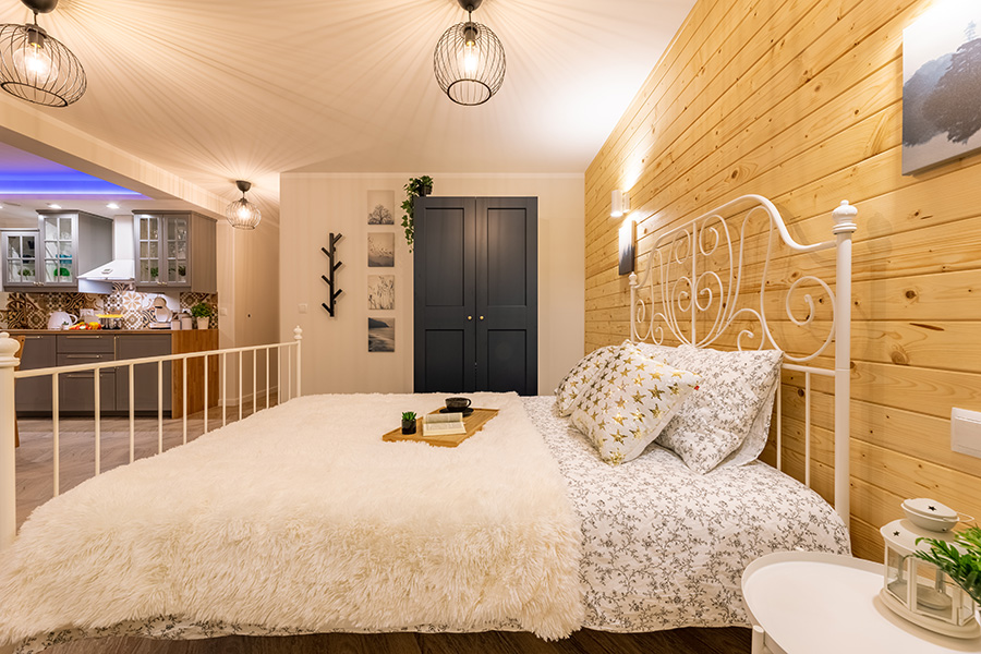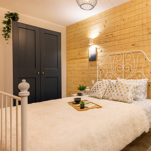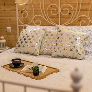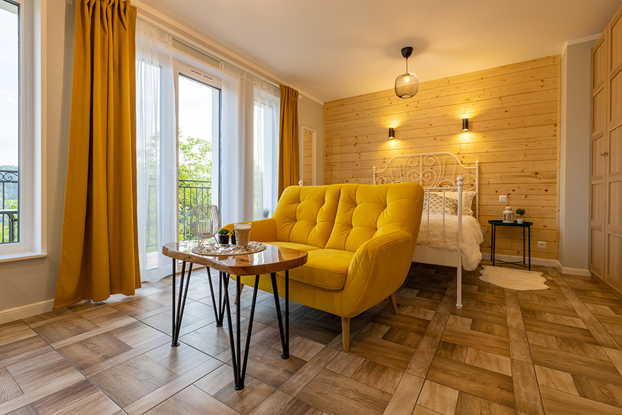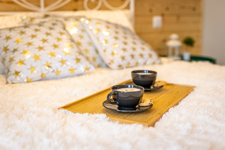 2-osobowy z łożem małżeńskim, z miejscem do odpczynku, prywatną łazienką i tarasem. Aneks kuchenny z ekspresem do kawy i pełnym wyposażeniem.