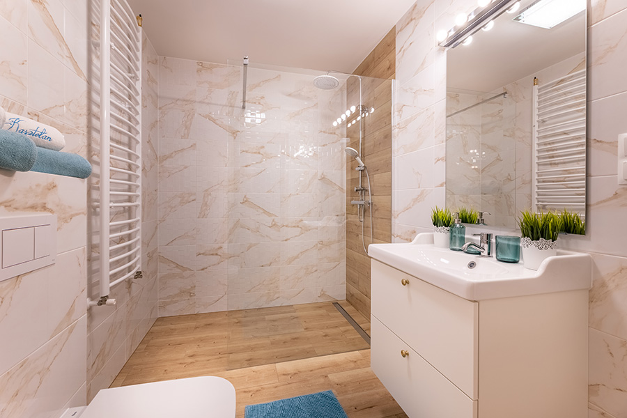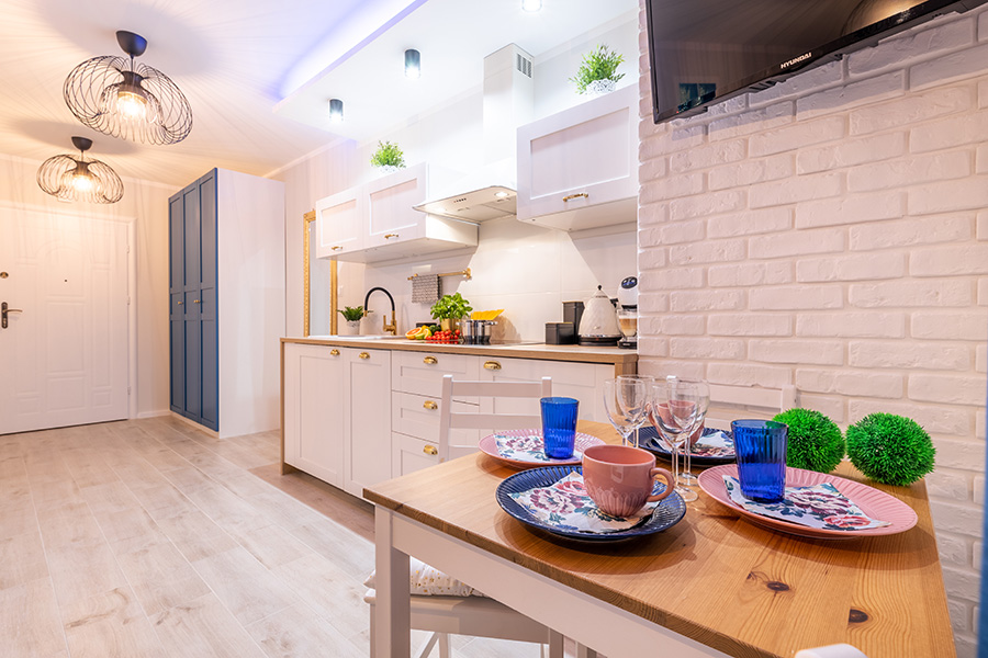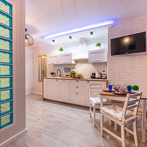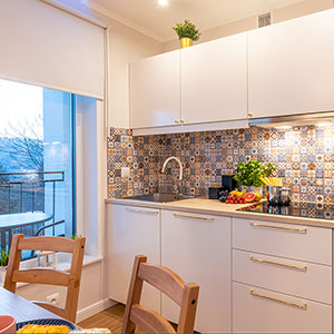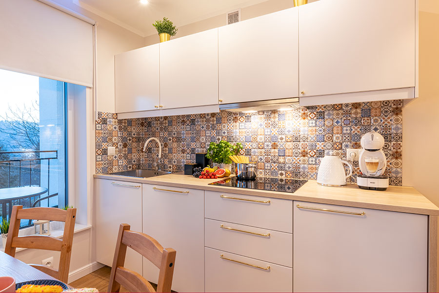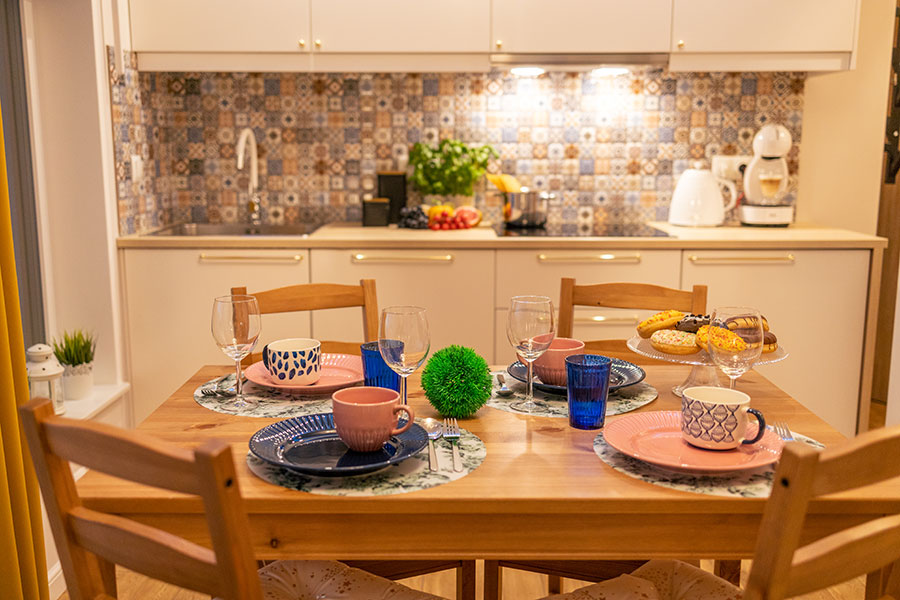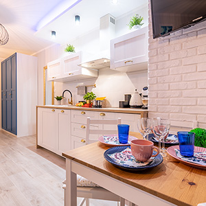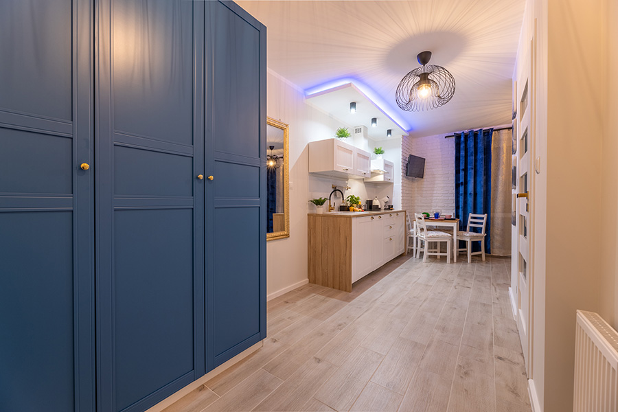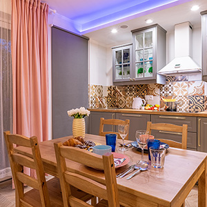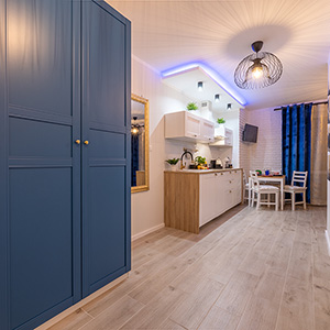 4-osobowy z dwoma sypialniami, w każdym łoże małżeńskie oraz salon z aneksem kuchennym, ekspresem do kawy i pełnym wyposażeniem. Prywatną łazienką i przestronnym balkonem.