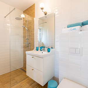 4-osobowy z salonem i kuchenią z ekspresem do kawy i pełnym wyposażeniem oraz sypialnia z łożem małżeńskim. Prywatna łazienka z wanną i balkon.